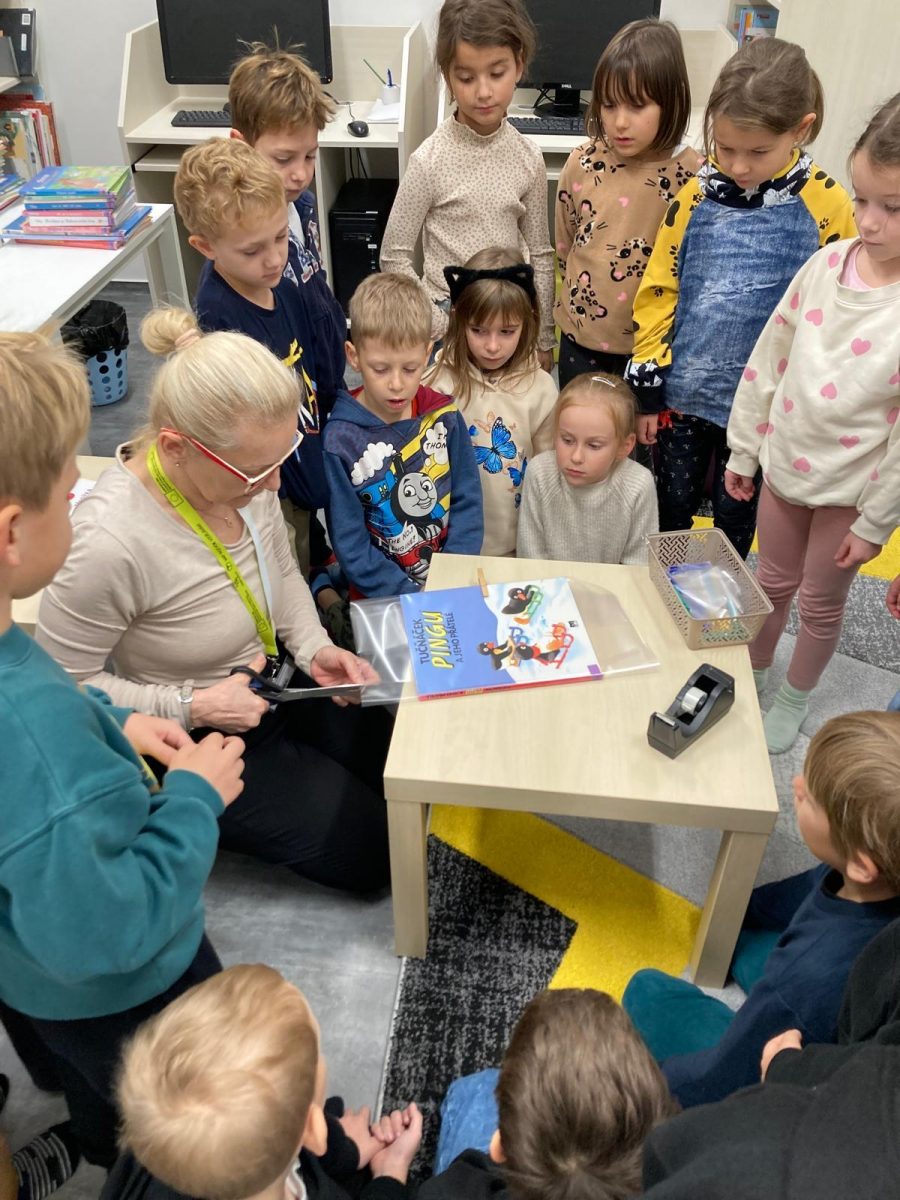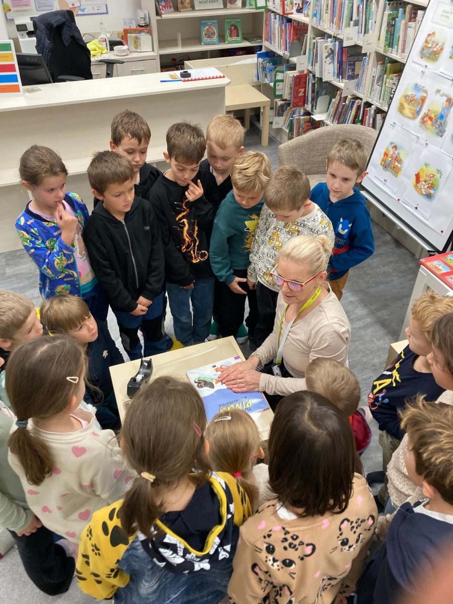 Již od prvních tříd rozvíjíme čtenářské dovednosti v hodinách ale i spoluprací s knihovnou, která je nedaleko naší školy. Prvňáčci pravidelně navštěvují v rámci výuky čtenářské dílničky v knihovně. Seznamují se se způsobem vypůjčování knih, péčí o knihy, dozví se o zajímavých a tematicky laděných knihách vhodných pro jejich věk a rozvíjí své vyjadřovací schopnosti při besedách. Spolupráce s místní knihovnou je napříč celým prvním stupněm. Děti pak mají možnost navštívit knihovnu v odpoledních hodinách a knihy si vypůjčit. Ve fotogalerii jsou žáčci tříd 1. A a 1. B při besedě.